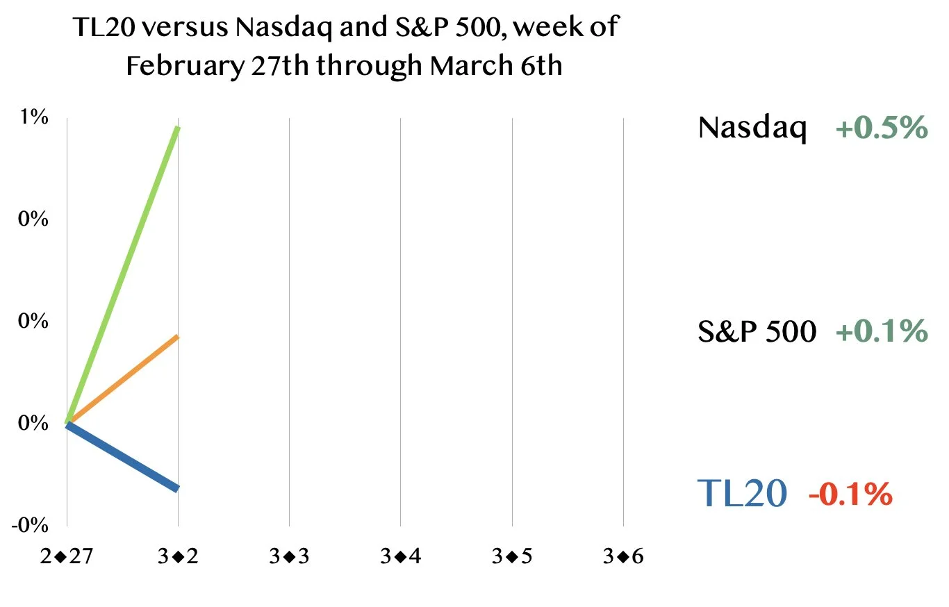 Year-to-date, the TL20 group of stocks to consider is up five percent, better than the four-percent decline of the Nasdaq and the one-percent decline of the S&P 500. Read about the TL20